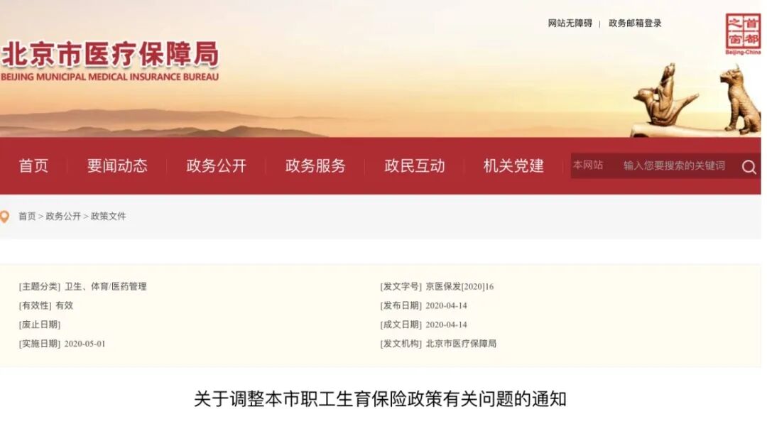 自5月1日起,北京市调整生育保险医疗费用支付标准,进一步保障好参保职工生育的基本医疗需求。